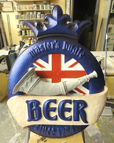 The hunt master's horn was the next piece to be created for the Master's Bugle sign. The basic shape was designed in EnRoute in two halves. It was roughed out on the MultiCam using a 3/8" ball nose bit with a 50% overlap. I didn't need a smooth shape because I was going to cover it with Abracadabra sculpting epoxy