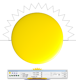 The giant sun for the Sunshine Homes sign was the next order of business. I created the vectors in EnRoute. The rectangle on the bottom will be used to cut off the round sun.